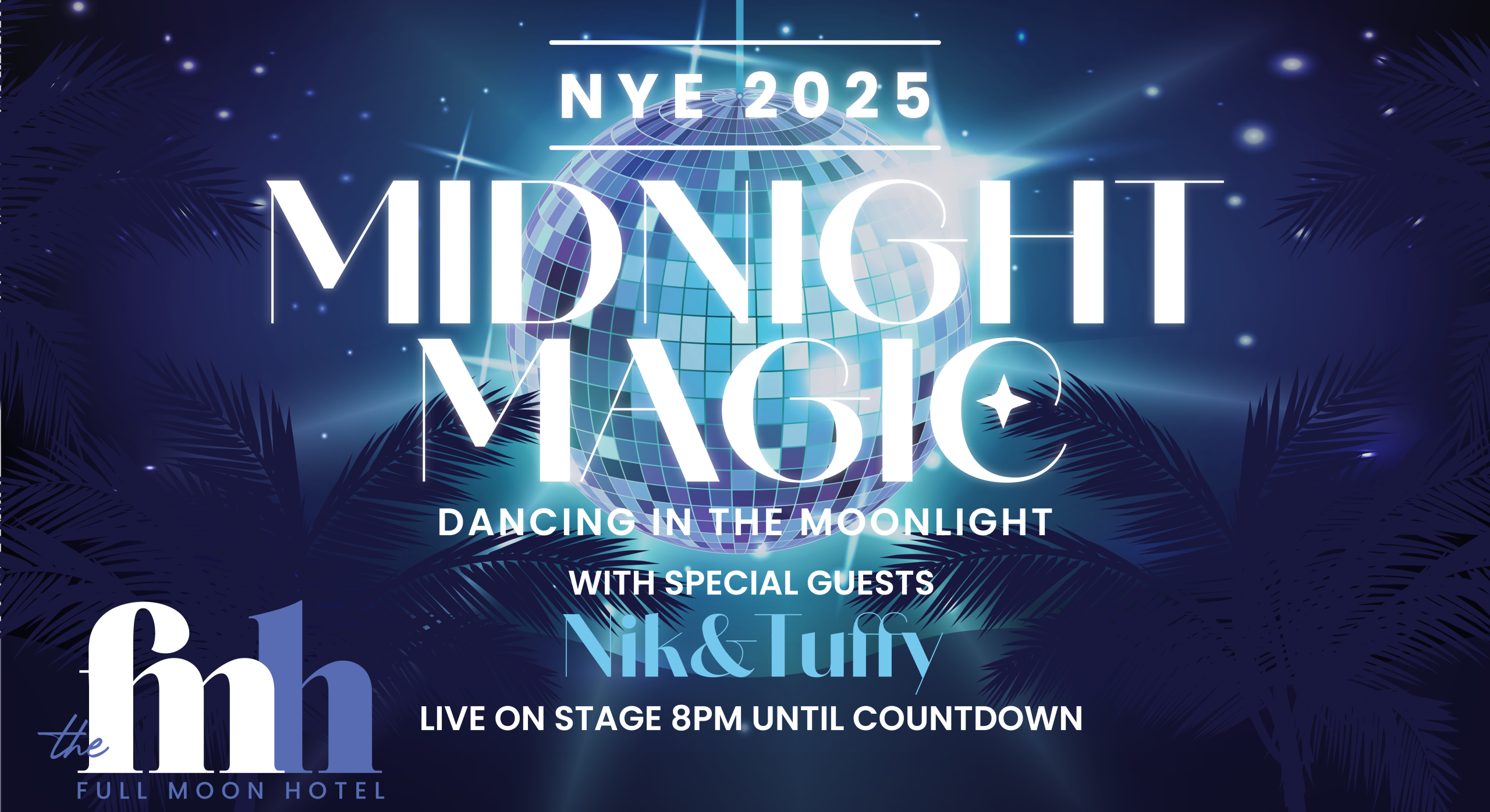 🌙 Experience the Midnight Magic this NYE at the Full Moon Hotel! 🪩